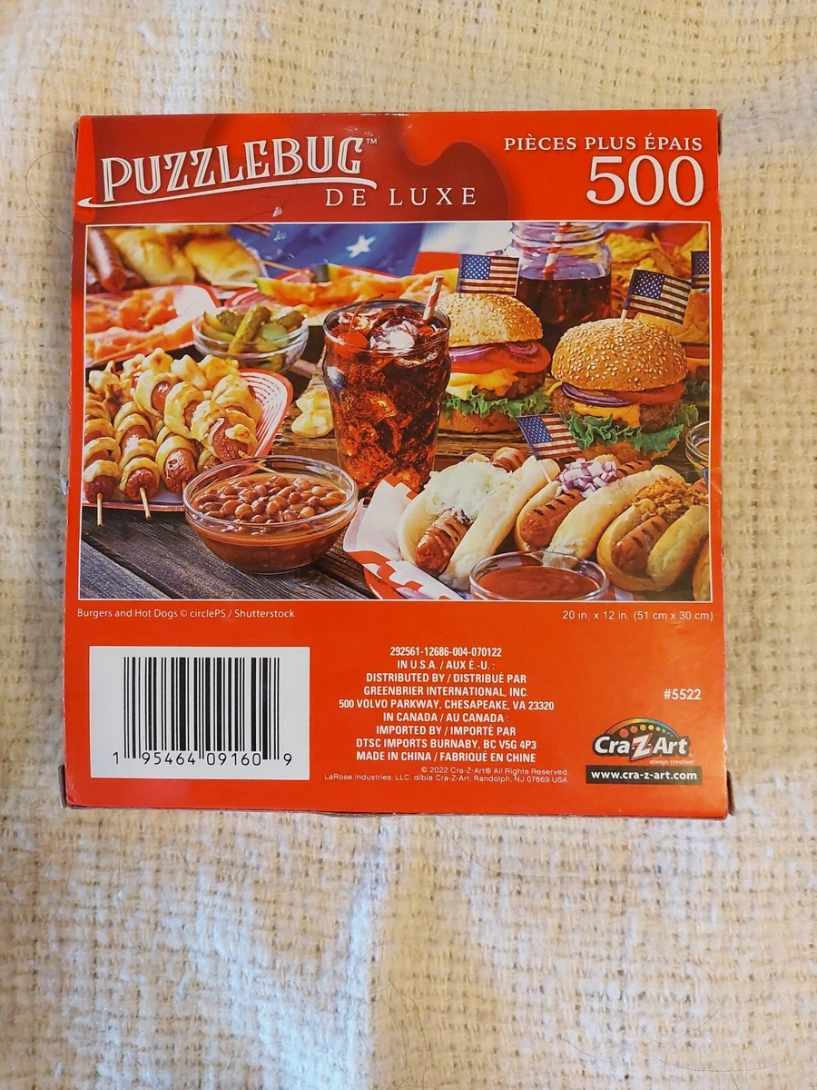 Puzzlebug Deluxe Puzzle 500 Pieces Burgers And Hot Dogs 20 X 12 New Ebay